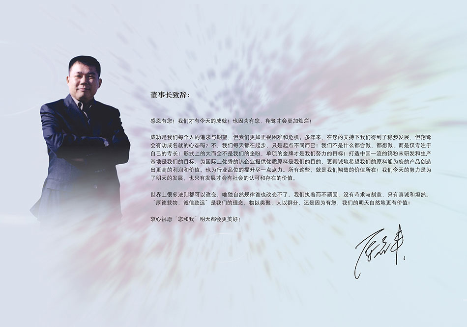 公司配備先進的生產(chǎn)設備和工藝,擁有精密齊全的檢測儀器,注重技術創(chuàng)新,堅持實施技術領先的差異化戰(zhàn)略和強化管理降低成本的領先戰(zhàn)略,不斷提升產(chǎn)品技術工藝水平,繼續(xù)加大研發(fā)投入力度,以做精、做專、做實為原則提升企業(yè)在整個行業(yè)的綜合競爭力,努力打造一流的中國鎢粉末研發(fā)和生產(chǎn)基地,向具有較強國際競爭力的集團化高科技企業(yè)邁進。